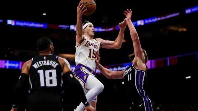 新的一周刚开始,湖人就为湖人球迷送上一份惊喜,原以为缺少了詹姆斯和东契奇,湖人会惨败给国王,结果湖人硬是靠着全民皆兵的状态,最终以127比120击败国王,取得两连胜,全场比赛,湖人全队5人得分上双,八村垒18分,艾顿22分15篮板,斯玛特11分5助攻,拉拉维亚11分6篮板5助攻,他们在比赛的不同阶段贡献了属于自己的亮眼表现,但要说本场比赛最闪耀的球员,无疑是湖人后卫里夫斯。