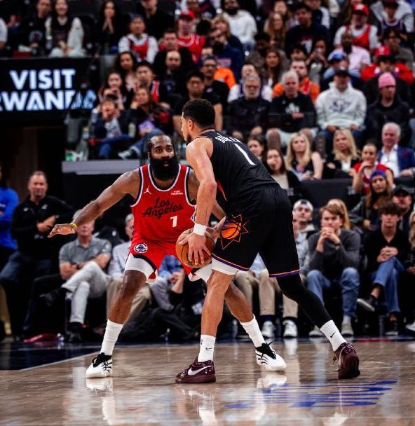 次节,科林斯联手祖巴茨、邓恩在太阳内线砍分,6-0的开局将分差抹平。暂停回来,比尔连续投篮不中,邓恩罚球也不中,太阳两个3分命中,再度建立6分领先优势。祖巴茨在内线打出优势,连拿4分,科林斯抢断打进2+1,快船刚领先1分,狄龙和古德温分别命中3分,太阳拿下5分领先,打停快船。比赛回来,祖巴茨抛投打进后,两队陷入混战,哈登连续3分不中,布克反击上篮打进,克里斯蒂造犯规两罚一中,吉莱斯皮连中3分,布克借助掩护换手上篮,太阳外线突然爆发,取得14分领先,快船这边的进攻一片混乱,丝毫没有章法可言。半场打完,太阳60-46领先快船。