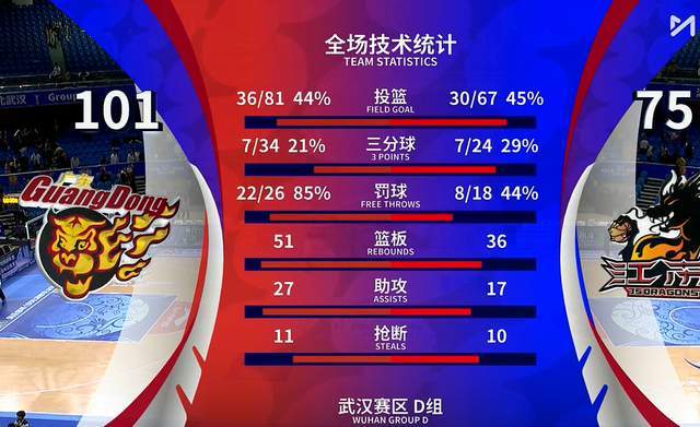 到了第四节,广东男篮还是保持着两位数,甚至于把领先优势拉大到了20+。如此一来,胜负的悬念就没了。最终,广东男篮以101-75大胜江苏男篮。