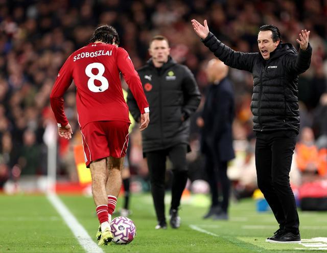 比赛尾声,利物浦中场索博斯洛伊在一次边线球期间,尝试“过”掉维拉主帅埃梅里来拖延时间,随后索博斯洛伊因此吃到黄牌。