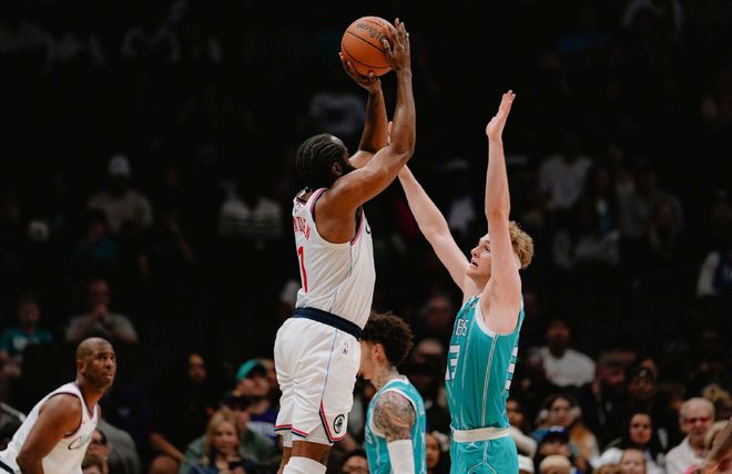 北京时间11月23日凌晨进行的一场比赛,快船客场131-116击败黄蜂。原本计划要通宵看完这场比赛,迷迷糊糊睡着,又突然梦中惊醒,翻开手机,哈登首节27分。仓促起笔,不知从何说起,全场比赛下来,哈登用了35分13秒,26中17,其中三分球16中10,爆砍55分7助攻。35和13这两个数字,老火箭球迷一定不陌生,当初麦迪是用了35秒追回了13分,面对马刺完成了史诗级别逆转。而哈登用了35分13秒,将自己再一次重笔载入史册。打到第四节,当黄蜂又一次将比分逐渐追回来时,哈登被换上场时,从三球鲍尔眼神中看到了绝望。