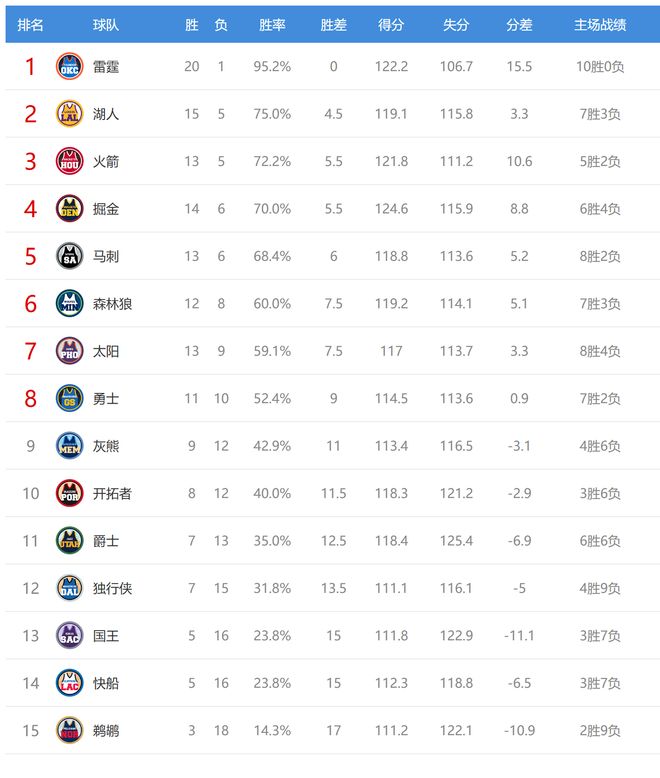 掘金输球后14胜6负排名西部第四,独行侠赢球后7胜15负排名西部第12。